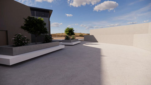 The site also includes a public firefighter memorial and outdoor amphitheater with seating for approximately 150 people, creating a meaningful space for remembrance, ceremonies, and public gatherings. Site improvements provide secured access, modern utilities, and infrastructure for future solar-shaded parking and electric vehicle charging, with a shade structure integrated into the amphitheater design.