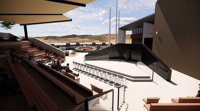 The site also includes a public firefighter memorial and outdoor amphitheater with seating for approximately 150 people, creating a meaningful space for remembrance, ceremonies, and public gatherings. Site improvements provide secured access, modern utilities, and infrastructure for future solar-shaded parking and electric vehicle charging, with a shade structure integrated into the amphitheater design.